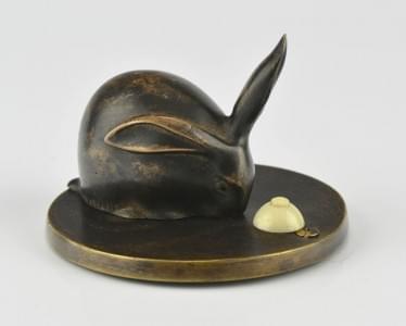 Sonnette de table lapin, bronze à patine brune, signé, fondeur S...