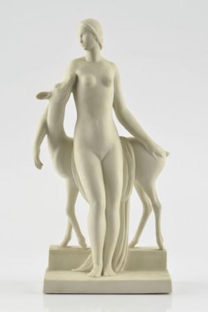 Femme à la biche, groupe en biscuit, signé G. Privat et Sèvres A...