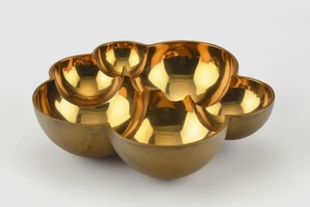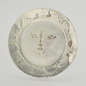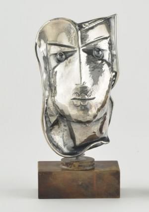 Visage larvé, 1956, plat rond, argent massif repoussé et ciselé,...