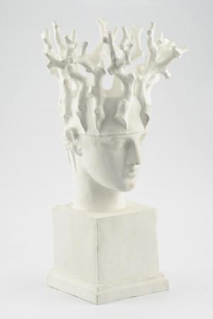Sculpture en plâtre représentant une tête d'homme à la coiffe en...