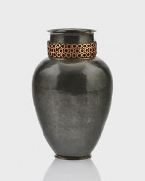 Vase Art Déco martelé à épaulement et col orné de pastilles
