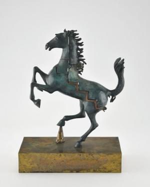 Caballo Ferrari I, bronze à patine verte et bronze doré, H 43 cm
