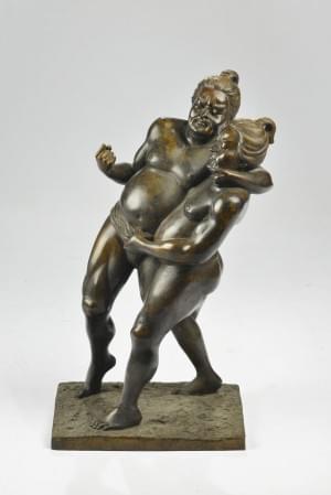 Combat de sumos, important bronze à patine brune, H 100 cm