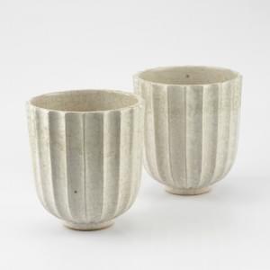 Paire de cache-pots cannelés, faïence recouverte d'émail blanc c...