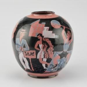 Vase ovoïde, Fête foraine, céramique émaillée noire, monogrammée...