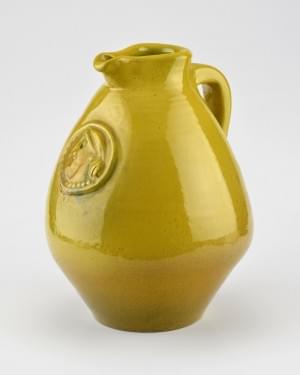 Vase, céramique à glaçure jaune avec décor appliqué d'un profil...