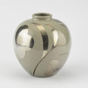 Vase Ovoïde, Fleurs stylisées, céramique émaillée gris-blanc et...