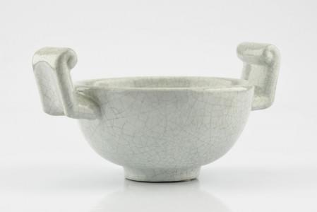 Coupe sur talon, faïence recouverte d'émail blanc craquelé, anse...
