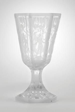 Verre sur pied hexagonal, verre à décor gravé de femmes nues et...