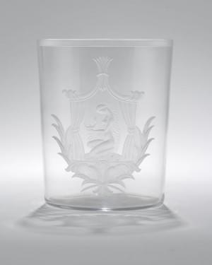 Gobelet, verre translucide à décor gravé d'une vestale tenant un...