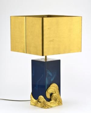 Table basse rectangulaire, piètement feuilles d'eau, bronze doré...