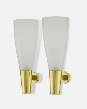 Suite de 3 plafonniers, modèle 2319, laiton, verre à facettes, e...