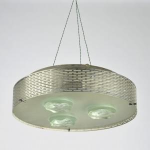 Plafonnier à 3 lumières modèle 2335, métal perforé, métal verre...