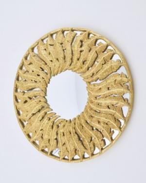 Miroir sorcière de forme circulaire, bois sculpté et doré à déco...