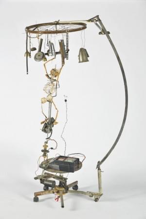Squelette percussionniste, acier, fer forgé, bois et divers maté...