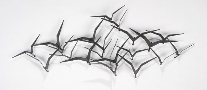 Envol d'oiseaux (1968), métal laqué noir, 80x124x20 cm