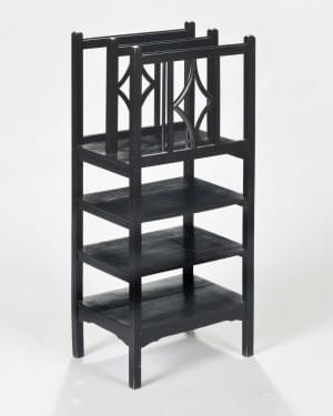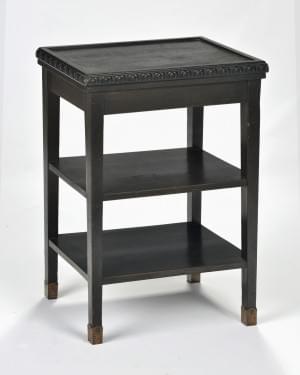 Quatre pieds supportant deux plateaux et entretoise, bois noirci...