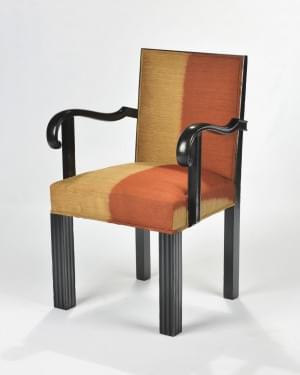 Fauteuil ayant appartenu à Ferdinand Hodler, chêne noirci, soie...