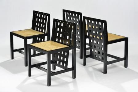 Quatre chaises Hill House, édition Cassina, bois laqué noir et a...