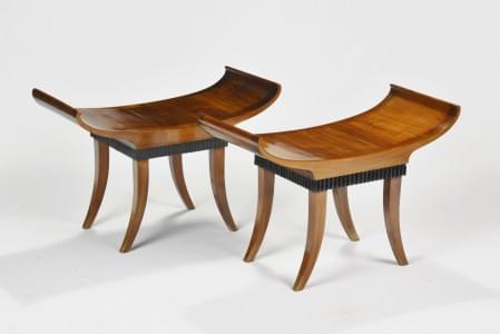 Pieds sabres, noyer et tissu blanc, Suisse circa 1920