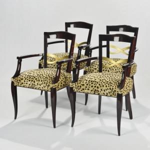 Suite de quatre fauteuils, acajou verni et laqué or, garniture e...