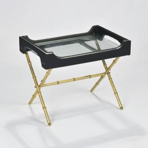 Table à thé, skaï piqué-sellier et laiton doré, piètement bambou...