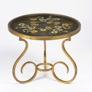 Guéridon rond, fer forgé et verre églomisé, circa 1960, H 50, D...