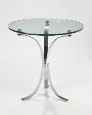 Guéridon rond, verre, métal chromé, circa 1970, 70x70 cm