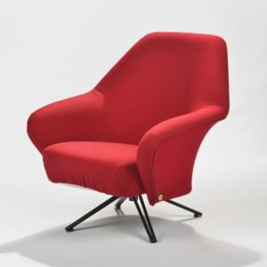 Garni d'un tissu rouge, piètement en acier laqué noir, Suisse, c...