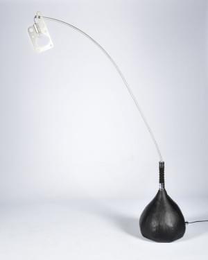 Tige en métl chromé reposant sur une base en cuir piqué sellier...