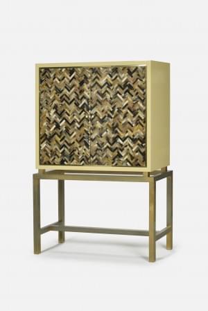 Ouvrant par 2 vantaux, bois laqué beige, placage de simili écail...