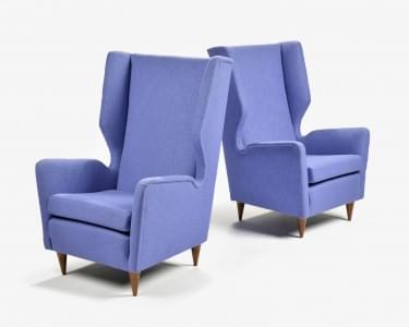 Paire de fauteuils à oreilles, garniture moderne, 112x70x75 cm