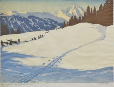Paysage de neige, estampe en couleur sur papier, titrée et signé...