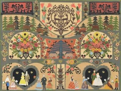 Scène de mariage et vendanges, suite de deux découpages traditio...