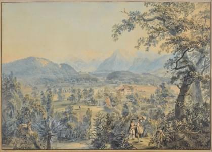 Paysage suisse, aquarelle, signée et datée 1793, 45x64 cm