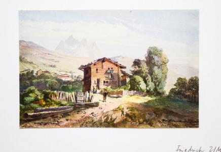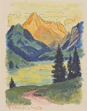 Chemin dans les Alpes fribourgeoises, aquarelle sur papier, sign...