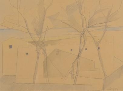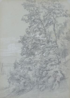 Etude d'arbre, mine de plomb et craie blanche sur papier