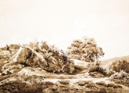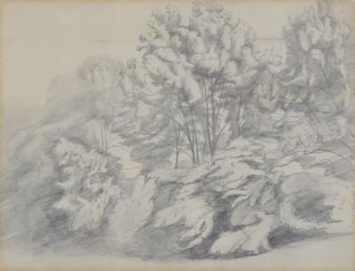 Etude d'arbre et rochers, mine de plomb et craie blanche sur pap...