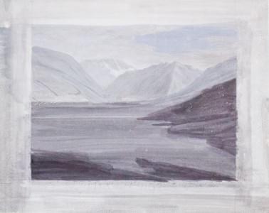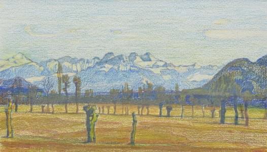 Vue des Alpes, crayon sur papier monogrammé, 18x30 cm