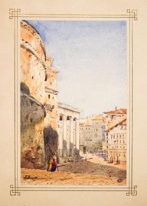 Vue du côté du Panthéon à Rome, aquarelle sur papier, signée, 18...