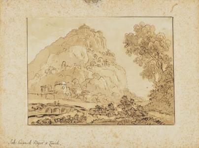 Vue de Delphes d'après Le Lorrain, plume et lavis d'encre sur pa...
