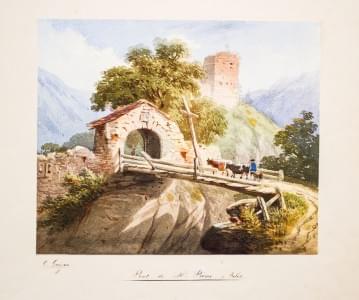 Pont de Saint Pierre en Valais, aquarelle sur papier, signée E G...