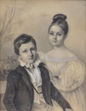 Portraits présumés de Jules et Adèle Naville, estompe sur papier...