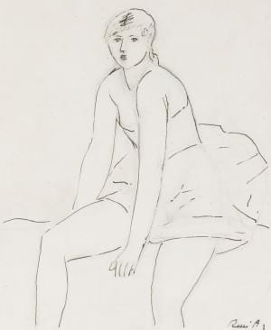 Etude de jeune femme, plume et mine de plomb sur papier, signée,...