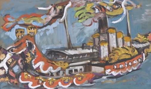 A la tombée de la nuit, gouache sur papier, 25x32 cm