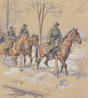 Soldat vaudois et sa femme, huile sur carton, 31x23 cm
