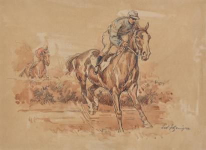 Concours saut d'obstacles au Grand Prix de Genève, gouache, sign...