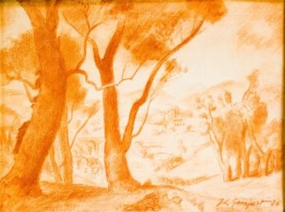 Paysage de Provence, sanguine sur papier, signée et datée (19)26...
