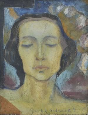 Visage de femme ou "Le silence", aquarelle et gouache sur papier...