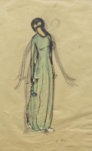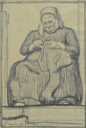 Couturière, projet, mine de plomb sur papier signée et datée 191...
